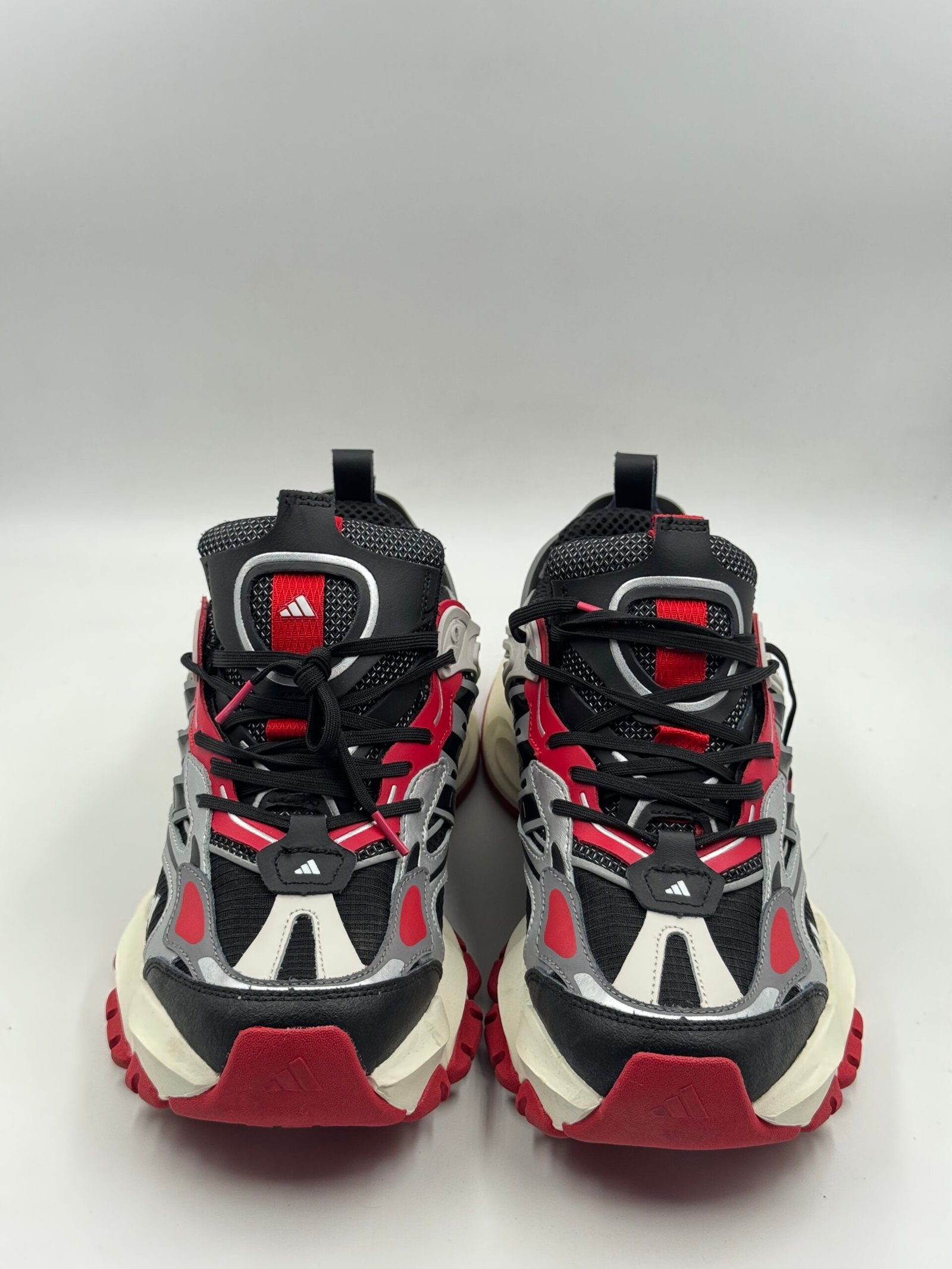 A bold fusion of style and performance, the Adidas XLG Runner Deluxe features a sleek black upper with silver overlays and red accents. Designed for comfort and impact absorption, it offers a chunky sole, breathable mesh, and futuristic streetwear vibes