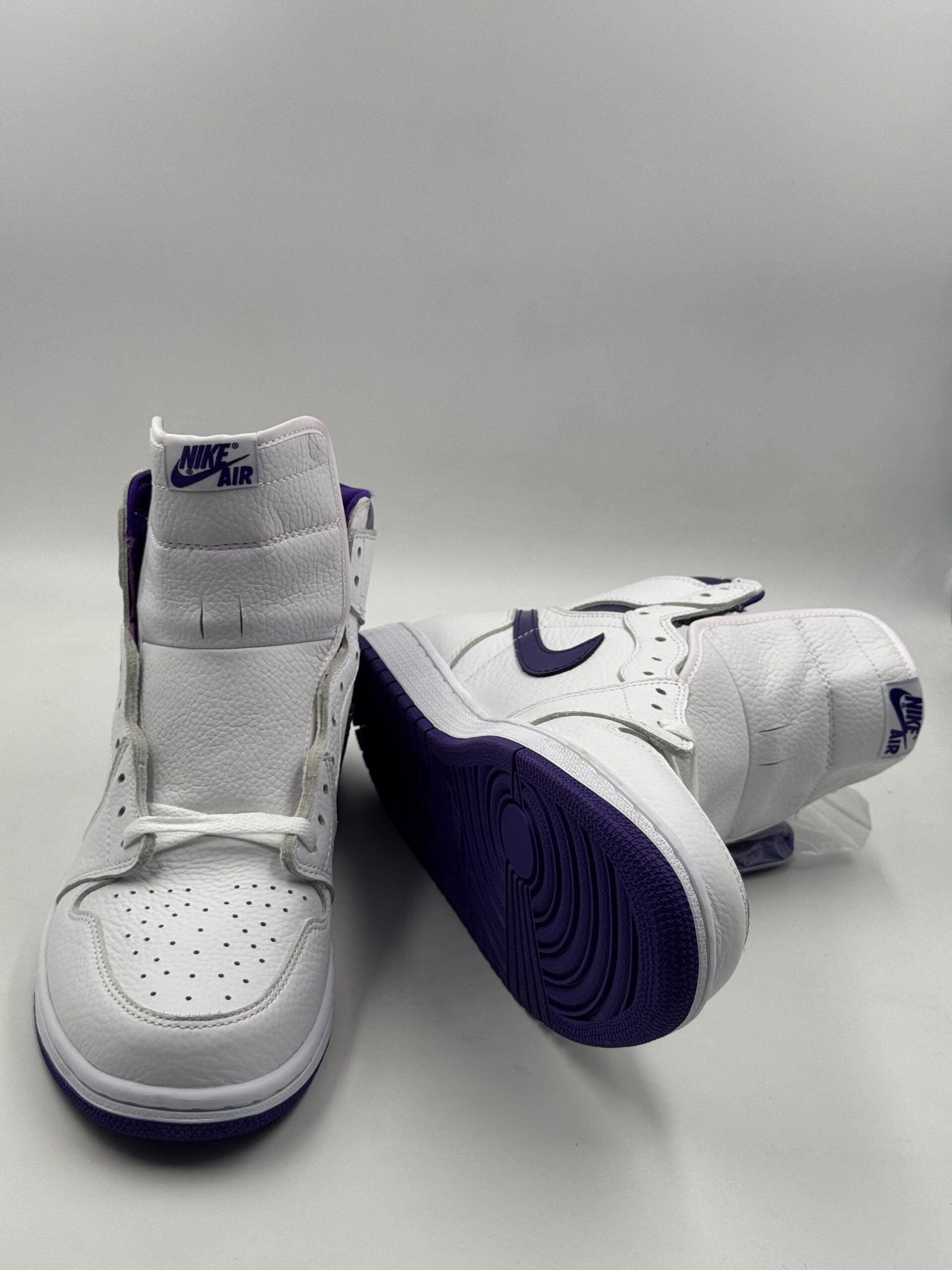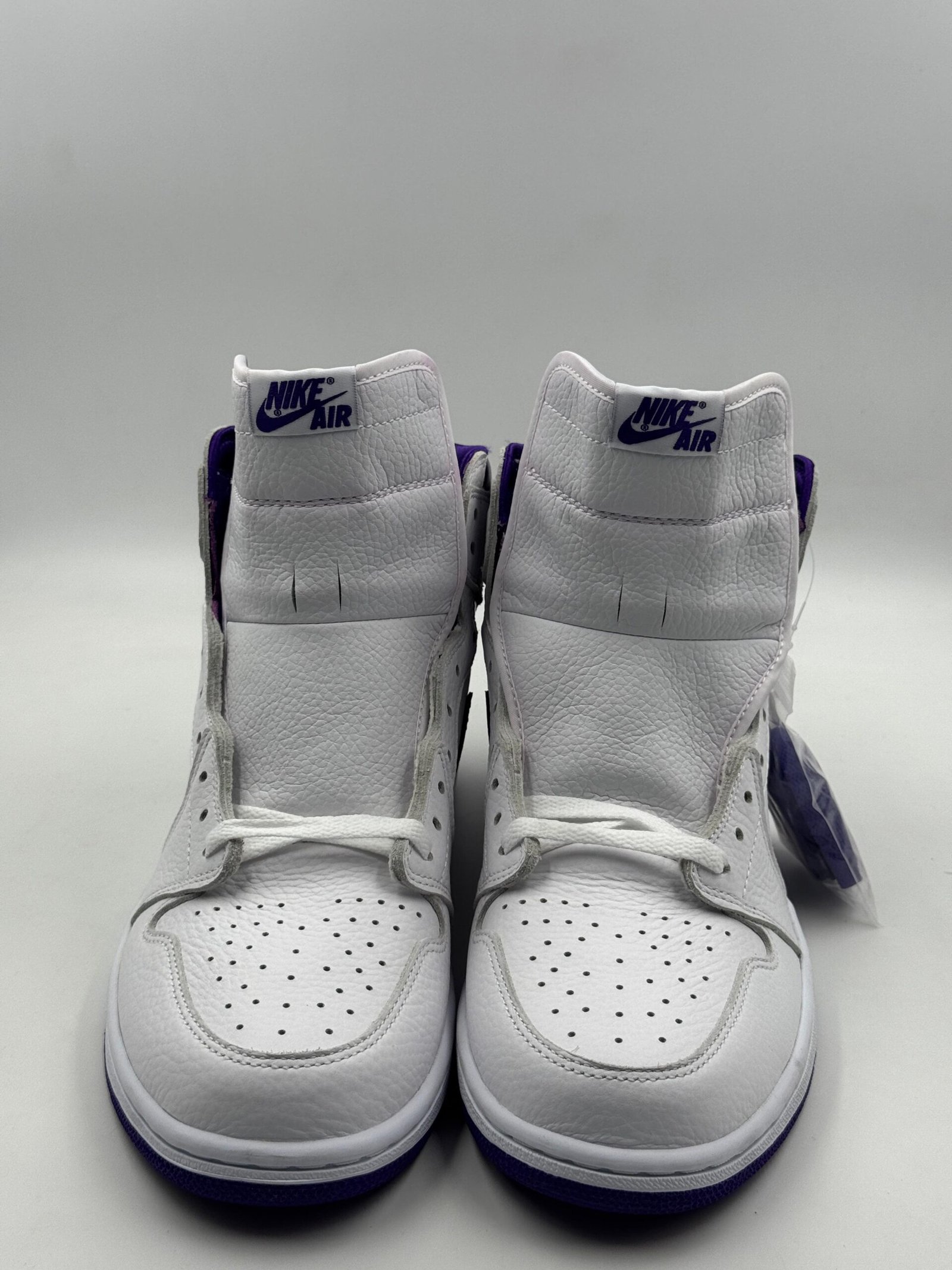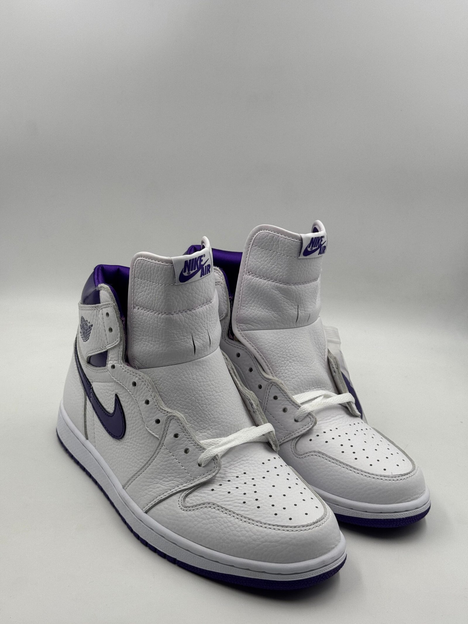 The Jordan 1 Retro High Court Purple is a bold and stylish sneaker that combines classic design with modern flair. Featuring a striking Court Purple and white leather upper, it incorporates black accents and the signature Nike Swoosh for a fresh, dynamic look. The high-top silhouette provides support, while the Air cushioning in the sole ensures comfort. This retro release stays true to its heritage, offering a versatile and fashionable option for sneaker lovers.