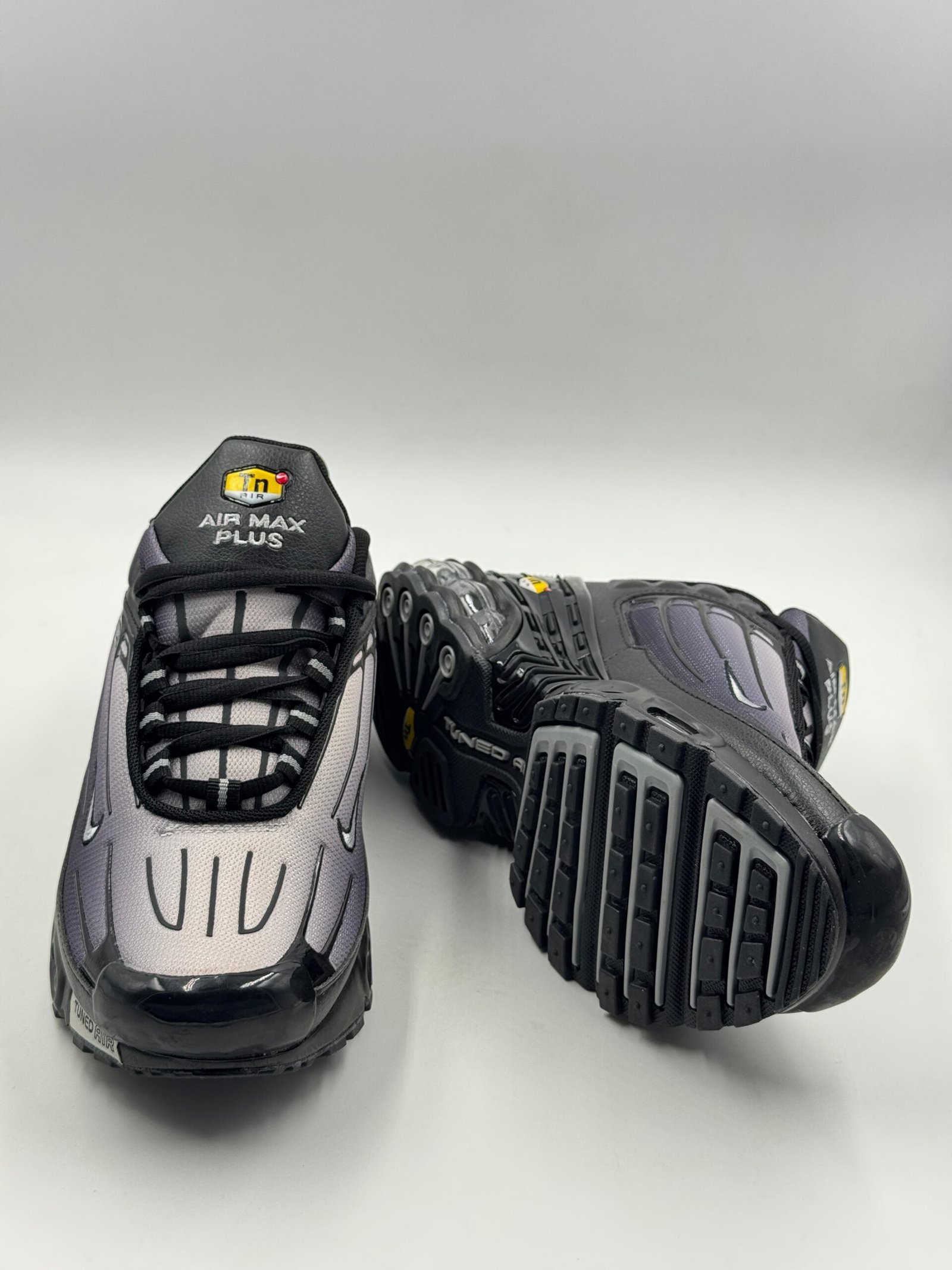 The Nike Air Max Plus 3 is a bold and modern iteration of the classic Nike Air Max Plus series. Released as a follow-up to the original Air Max Plus from the late ’90s, the Air Max Plus 3 blends futuristic design elements with the recognizable features of the iconic silhouette. It features a sleek mesh and synthetic upper with tuned Air cushioning in the sole for maximum comfort and support.