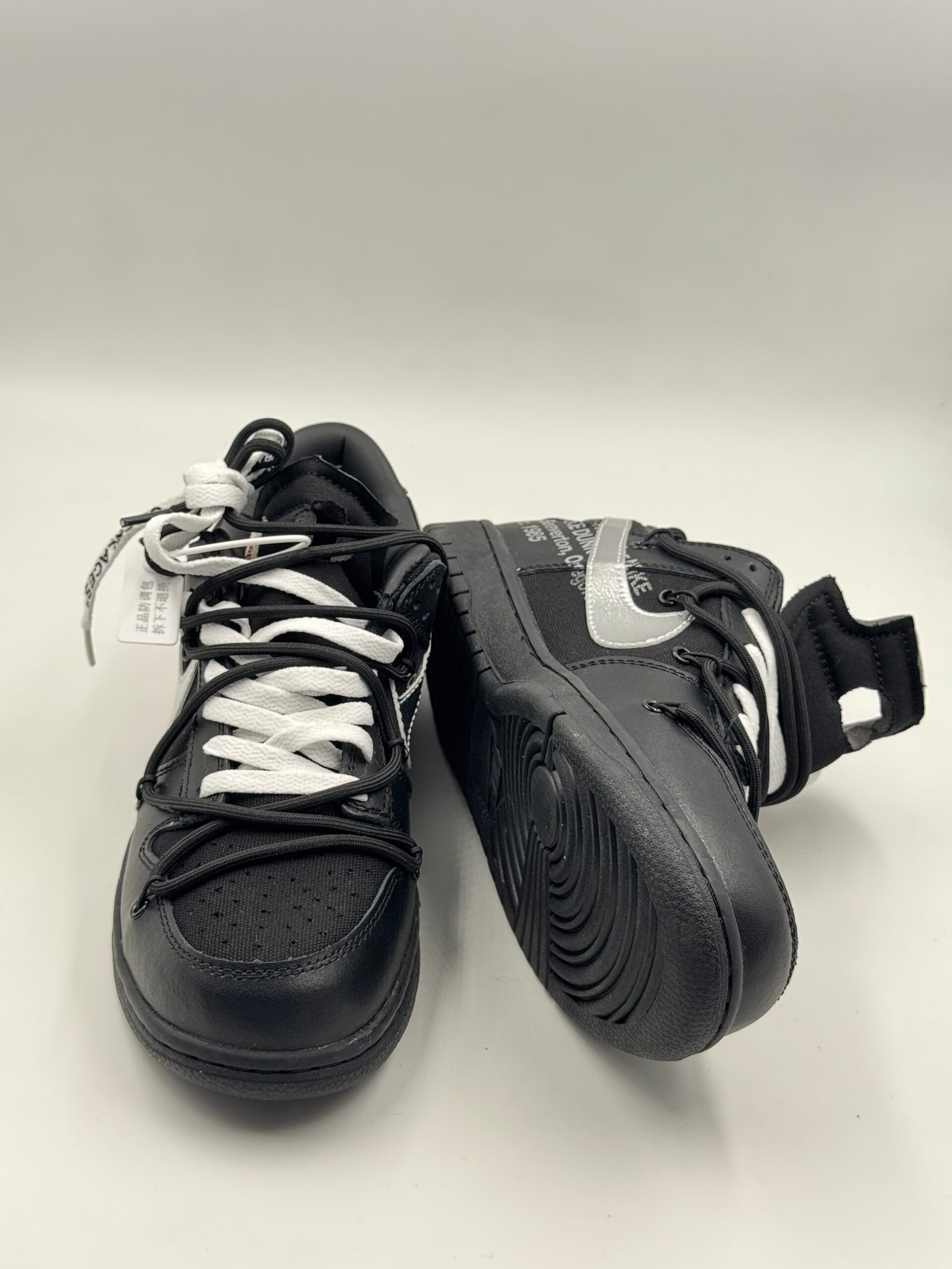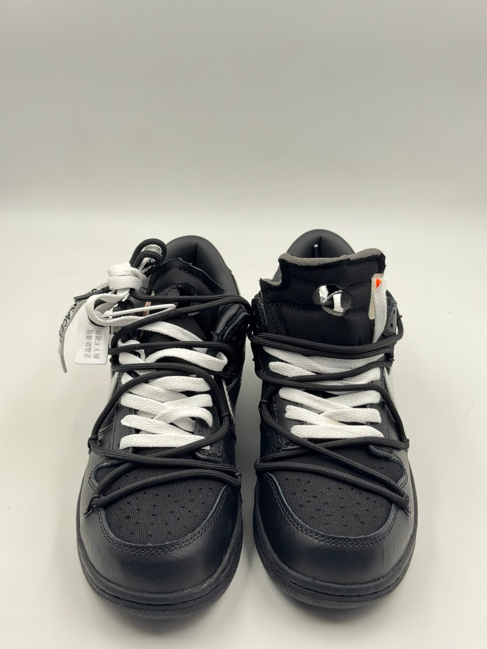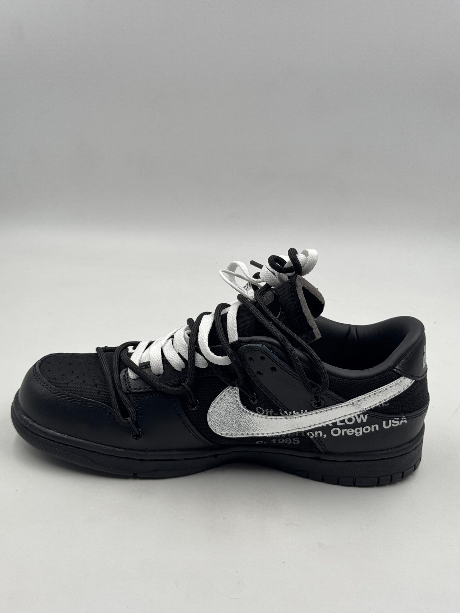 The Nike Dunk Low Off-White ‘Lot 50’ is the final and rarest pair from Virgil Abloh’s iconic “Dear Summer” collection. Featuring an all-black leather and suede upper, it stands apart from the other 49 pairs, which have white or grey bases. Signature Off-White details like the zip-tie, exposed foam tongue, and Helvetica text branding give it a deconstructed aesthetic. A metallic silver Swoosh and purple midsole detailing complete the exclusive, limited-edition design.