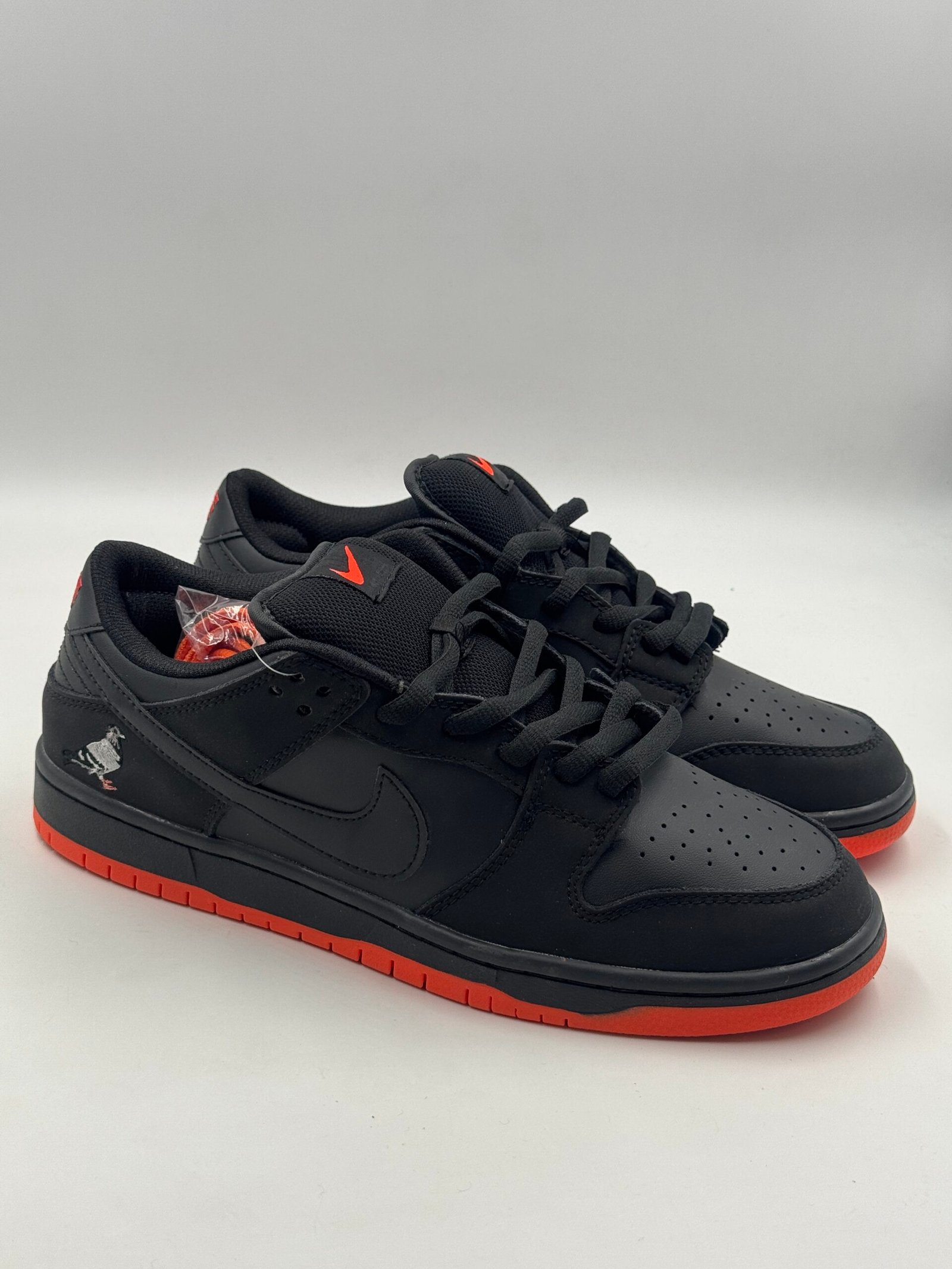 The Nike SB Dunk Low ‘Black Pigeon’ is a bold reinterpretation of Jeff Staple’s legendary Pigeon series, originally released in 2017. Featuring a sleek black nubuck upper, this edition maintains the classic pigeon embroidery on the heel, symbolizing New York’s street culture. A contrasting white midsole and the signature orange outsole pay homage to the 2005 NYC Pigeon Dunk, while the updated darker colorway adds a fresh, modern twist. Designed for both collectors and skaters, the Nike SB Dunk Low ‘Black Pigeon’ delivers premium materials, durability, and a piece of sneaker history in every step.