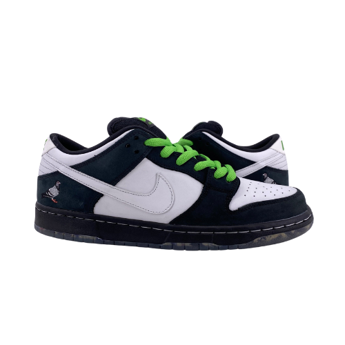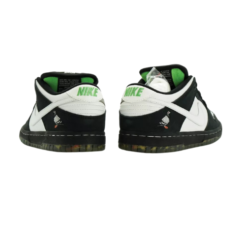 The Nike SB Dunk Low ‘Panda Pigeon’ is a special edition sneaker designed by Jeff Staple, continuing the legacy of his iconic Pigeon series. This design features a black-and-white “Panda” color scheme, inspired by the beloved bird and its connection to both New York City and China. The classic pigeon logo is embroidered on the heel, while subtle newspaper print graphics on the insole nod to the sneaker culture frenzy surrounding previous Pigeon releases. Crafted with premium leather and suede, the Nike SB Dunk Low ‘Panda Pigeon’ blends skate functionality with streetwear heritage, making it a must-have for collectors.